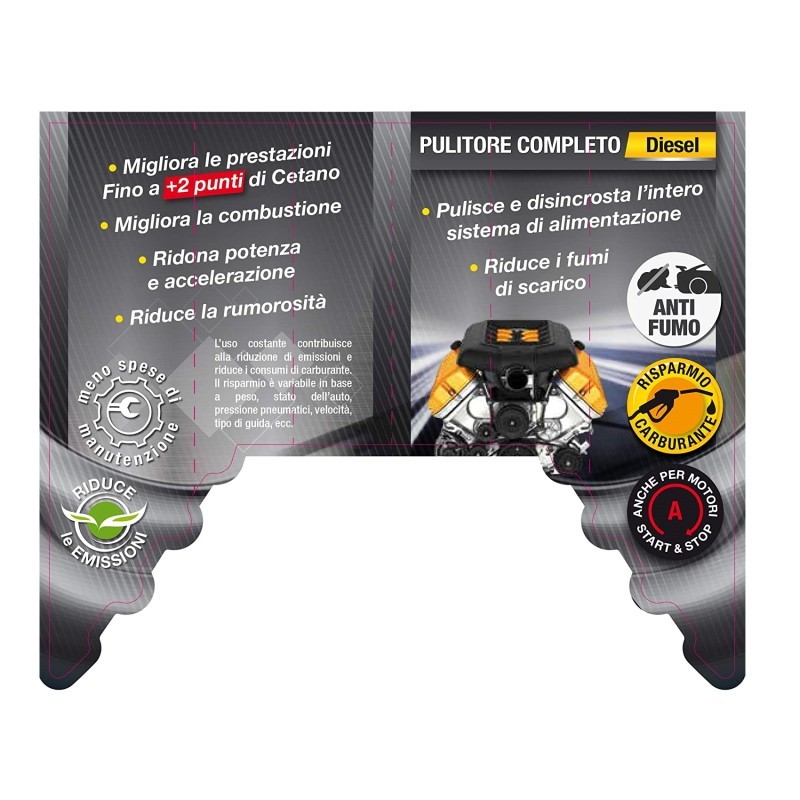 Pulitore Completo Motore Diesel Migliora La Combustione, Aumentando Il Numero Di Cetano. Previene La Formazione Di Depositi Sulle Valvole Di Scarico, Pulendo L'Intero Sistema Di Alimentazione. Aiuta A Ridurre I Consumi Di Carburante. In Flacone.