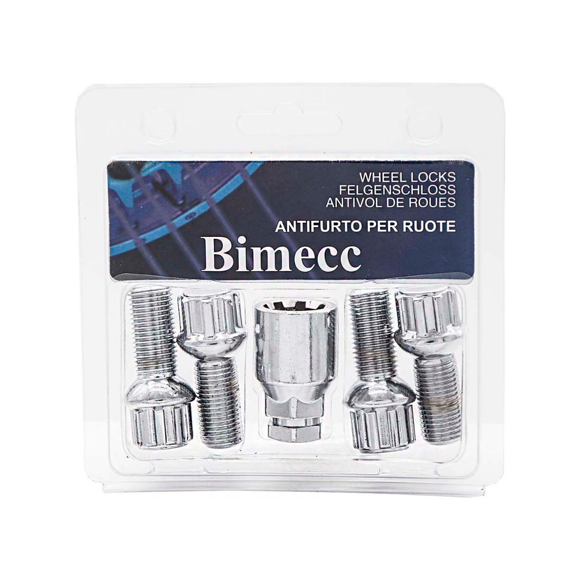 Kit 4pz di bullone ruota antifurto a sede sferica R13 passo M14X1,50 lunghezza stelo 50mm per distanziali.