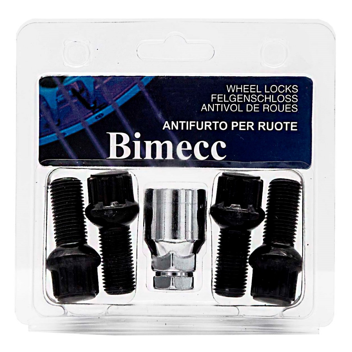 Kit 4pz di bullone ruota antifurto a sede sferica R13 passo M14X1,50 lunghezza stelo 28mm