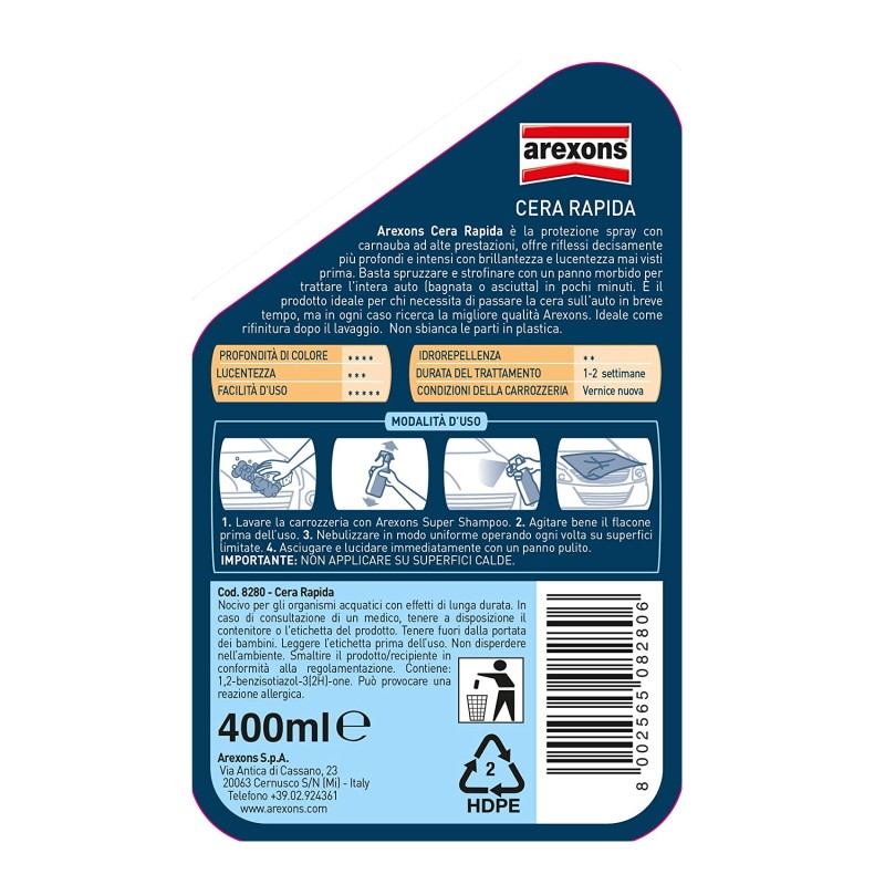 Cera Lucidante Arexons Cera Rapida Spray Lucidante Dopo Lavaggio 400ml