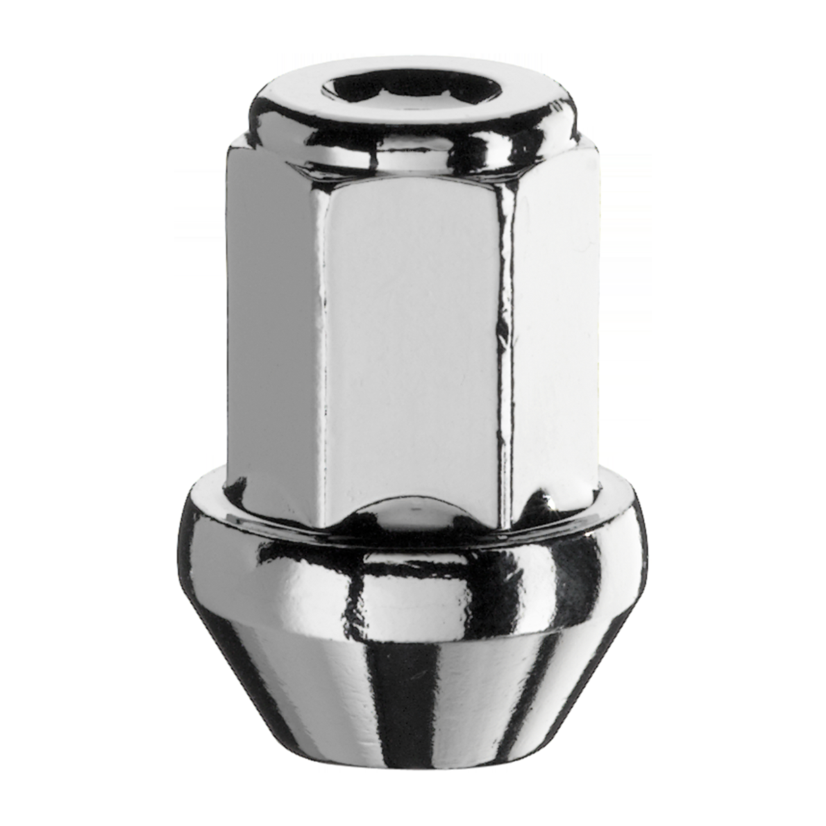 Dado ruota a sede conica 60° passo M12X1,25 con corpo monoblocco chiuso in chiave 17 Altezza di 34mm