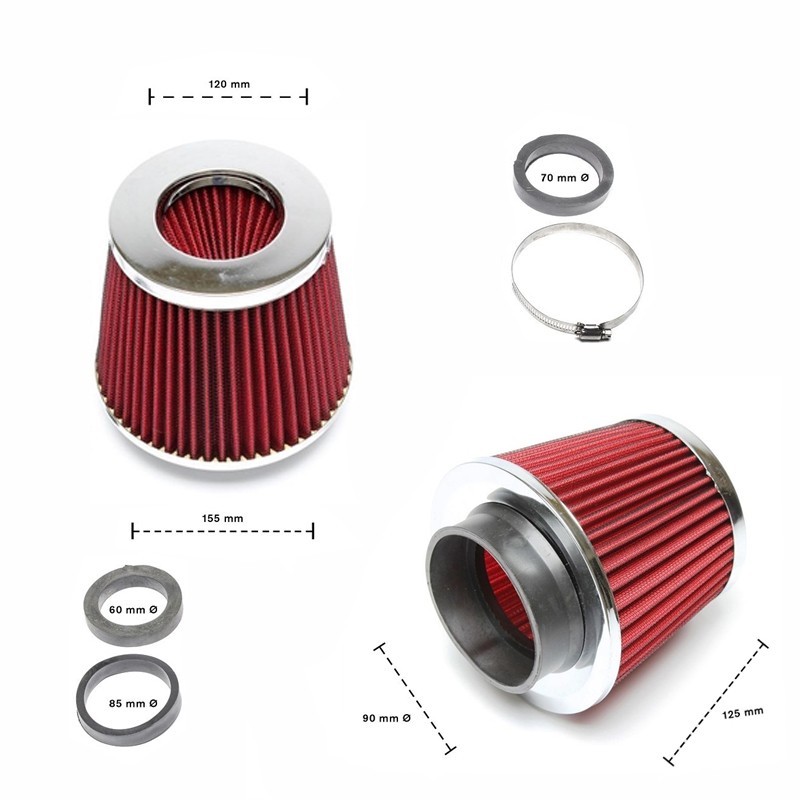 I filtri conici per aspirazione diretta, possono essere installati su ogni tipo di auto eliminando la scatola filtro originale.