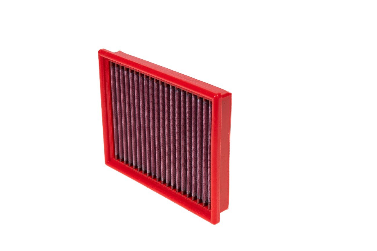 ll filtro aria BMC è composto da due strati di rete di alluminio con rivestimento epossidico posto a protezione della struttura della rete, che vincola il materiale filtrante in cotone oliato, disposto su più strati.Questo garantisce un elevato livello di efficienza filtrante e una minima perdita di carico, ovvero la differenza tra aria da filtrare e aria filtrata. L’olio utilizzato aiuta nella ritenzione delle impurità contenute nell’aria, permettendo una filtrazione continua. L’elemento filtrante in cotone è co-stampato all’interno di un telaio di supporto esterno che si inserisce direttamente nell’air-box e ne caratterizza la perfetta installazione. Ogni fase del processo produttivo (dalla progettazione alla produzione) è svolta in Italia da tecnici italiani utilizzando i migliori materiali.