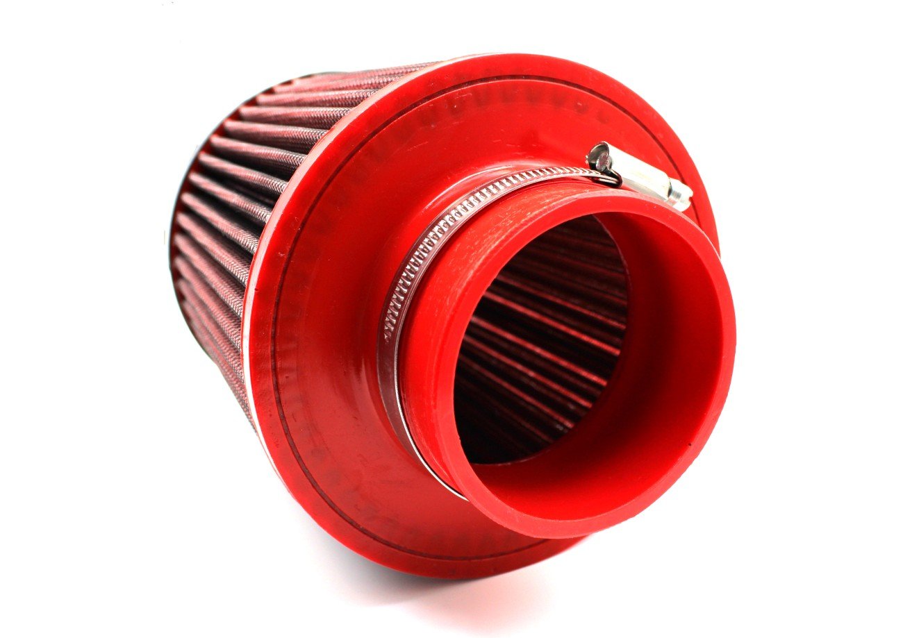 I filtri aria conici BMC per aspirazione diretta, possono essere installati su ogni tipo di auto eliminando la scatola filtro originale. I filtri aria conici BMC per aspirazione diretta, vengono realizzati con la caratteristica gomma rossa che permette al manicotto di imbocco di essere particolarmente resistente sia alle sollecitazioni meccaniche sia a quelle termiche senza subire deformazioni a causa della temperatura. La rete speciale utilizzata nell'elemento filtrante consente di costruire filtri aria per applicazioni con potenze fino a 700 CV senza presentare problemi di deformazione del filtro in aspirazione.